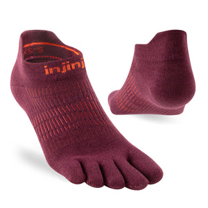 The Women's Lightweight No-Show sock is a part of Injinjis existing Run Series designed to maximize a runners performance without sacrificing personal comfort. Recognising that all feet are not the same, the Women's toesock is designed to better accommodate a female foot, which is typically narrower than a males foot, with an increased heel to toe stretch. The increased two-way stretch will enable the material to better stretch across a females foot arch providing compression throughout the foot. The fit of the individual toe-sleeves were redesigned for a better, snugger fit throughout the toes for female wearers without any excess material.