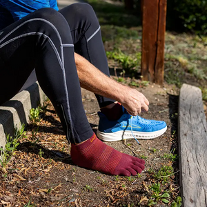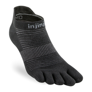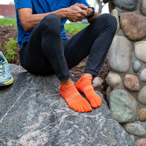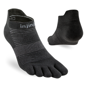 Our lowest-bulk sock is built for all types of runs on all kinds of surfaces. Our unique five-toe performance design eliminates the friction that can cause blisters, and keeps your toes free for better feel and natural fit on uneven terrain. Soft, durable seamless construction creates a supportive, secure fit, a mesh top and COOLMAX® fibers help keep feet dry and cool, and a band under the arch provides support and stability. The no-show length rests below the ankle and features a heel tab to protect against chafing and keep your socks from sliding into your shoes.